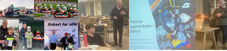 Sist mandag fikk vi høre Martin fortelle om prosjektet "Gokart for alle". Kort fortalt: Det er et økende samfunnsproblem at altfor mange barn og unge føler utenforskap. Årsakene til dette er sikkert mange. Dagens skoleverk vet vi skaper altfor mange tapere ved sin ensrettethet. Heller ikke alle barn vil spille fotball eller gå langrenn, eller har foreldre som har anledning til å støtte dette. I sum skaper samfunnet i dag dessverre en del barn uten mestringsglede på noen arenaer, og mange av disse søker dermed heller tilhørighet i miljø med vold og kriminalitet…. Martin viste seg fra sin beste side som den «greatest» formidler og ekte entusiasme for motorsport = «fart og spenning» fortelle om noe han BRENNER FOR!.