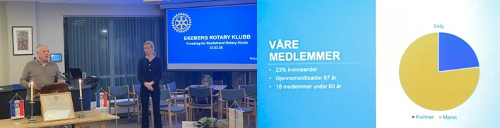 I vårt strategimøte i fjor ble det lansert mange store planer, og ikke minst ideer knyttet til temaet med rekruttering til NRK. Noe har vi oppnådd allerede. Vi har lykkes med å få inn flere nye medlemmer, og ikke minst det å få inn flere kvinner. Hanne representerer generasjonen som det er ettertraktet for klubben å rekruttere. Hun fortalte om hvordan de jobber. Det høres utrolig ut, men i Ekeberg Rotaryklubb er det ventelister for å bli medlem!